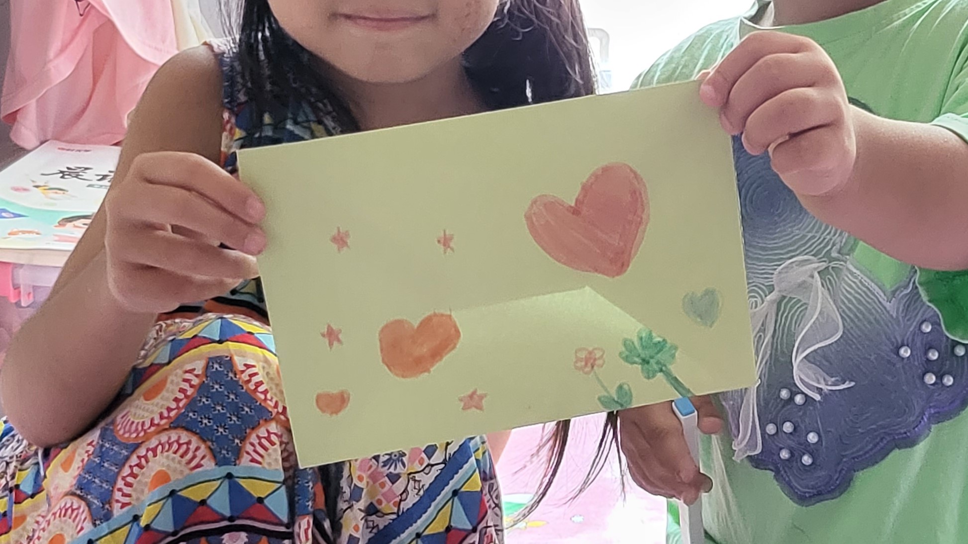 收到“愛心小書包”禮物的小姑娘,臉上露出了開心的笑容,用彩筆為黨員叔叔阿姨畫了一幅可愛的“愛心畫”。
