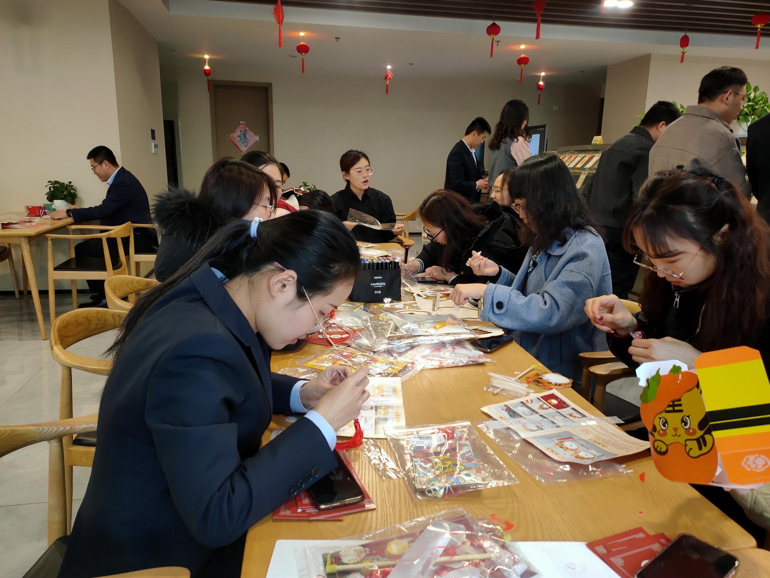 猜完燈謎,就到了大家最期待的做花燈環(huán)節(jié)。大家拿到材料包后,迫不及待地打開研究起來。集團(tuán)的小哥哥小姐姐們小心翼翼修剪、鏤空好燈面,并仔細(xì)地將不同的燈面粘貼、拼接起來。最后給燈籠掛上流蘇,頂部裝好燈桿,內(nèi)部插上彩燈后,一個(gè)精美的元宵燈就誕生了。“這是我親手做的燈籠,象征幸福、祥和,簡(jiǎn)直太好看了!”做好燈籠的邵山成就感滿滿,興奮地和燈籠合影留念。