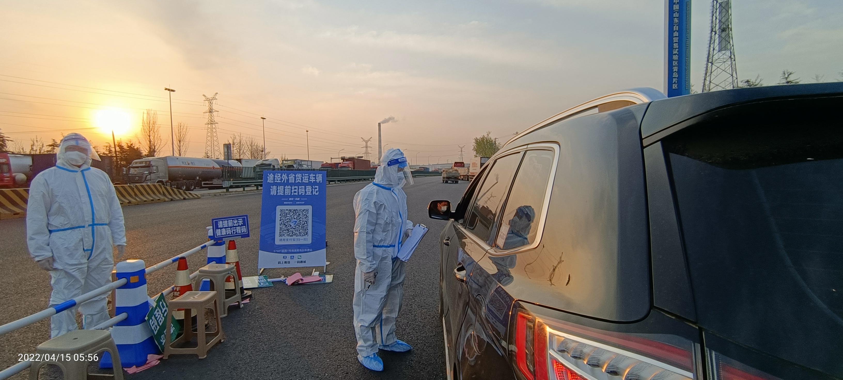 “我們采用三班倒的工作方式,每班八小時(shí),二十四小時(shí)不間斷執(zhí)勤,對(duì)下高速的車輛和人員進(jìn)行查驗(yàn),檢查健康碼、行程碼,不落一車,不漏一人。對(duì)中高風(fēng)險(xiǎn)地區(qū)來(lái)青人員進(jìn)行檢查登記,并引導(dǎo)進(jìn)行抗原檢測(cè)?!倍爬谡f(shuō),一個(gè)班八小時(shí)查驗(yàn)一千一百多輛車,幾乎不間斷。夜間特別是零點(diǎn)以后,車輛相對(duì)來(lái)說(shuō)會(huì)少一點(diǎn)。
