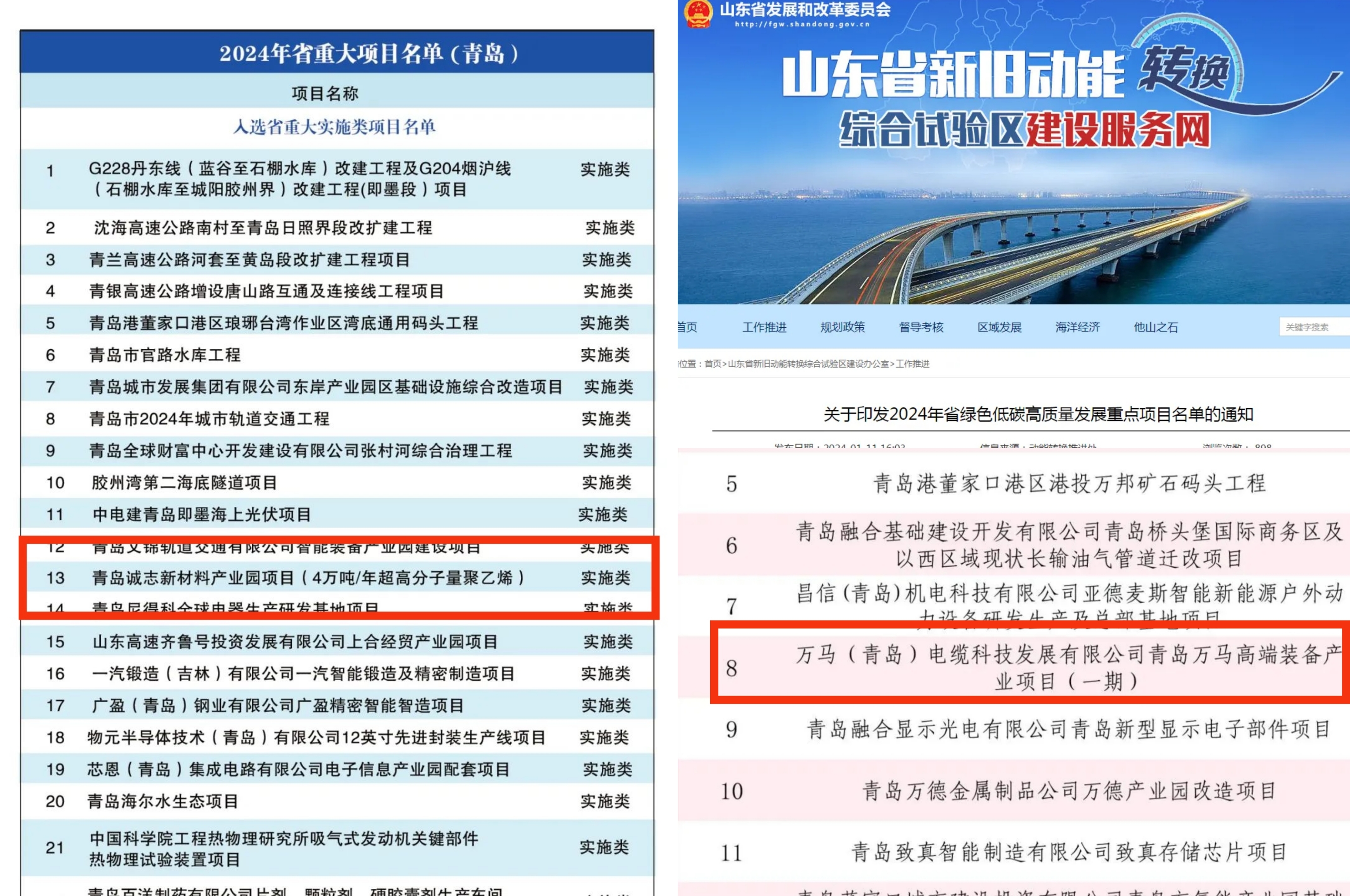 ▲山東省2024年重大項(xiàng)目名單和省綠色低碳高質(zhì)量發(fā)展重點(diǎn)項(xiàng)目名單